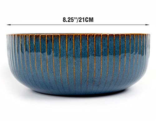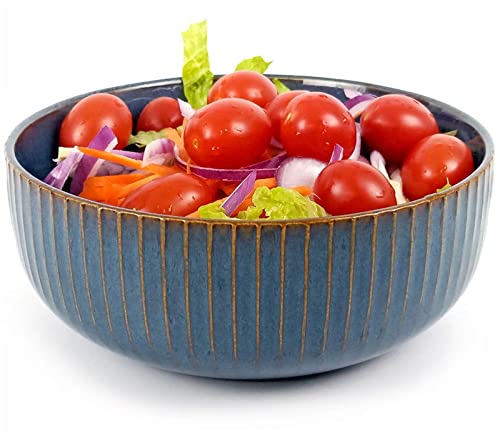 1800ml Porselein Salade Bowl Keramische Soep Bowl Grote Ramen Bowl Noodle Bowl Cereal Dessert Bowl Oatmeal Bowl Plate Fruit Bowl Serving Bowl Blauw 21cm