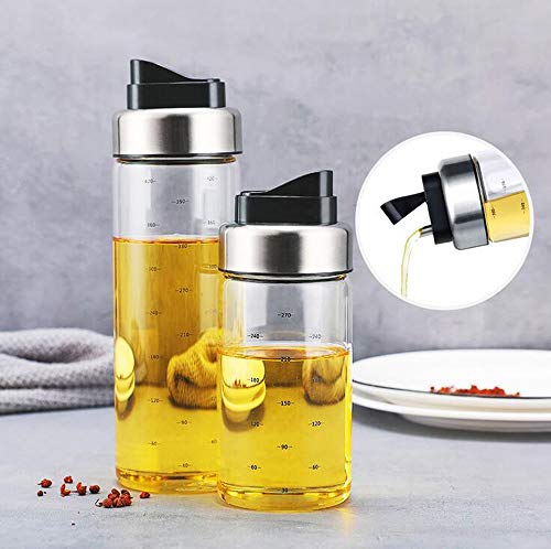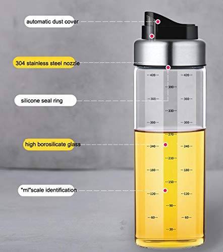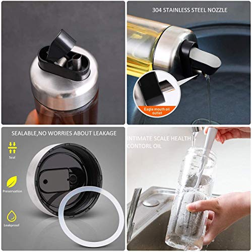 Nauwkeurige schenktuit en druppeltuit: de schenktuit geeft u volledige controle over het gieten van precies de juiste hoeveelheid olie, u hoeft zich geen zorgen te maken over een overdressed salade; olie druppelt of lekt niet uit de tuit, houdt de fles en het aanrecht schoon.