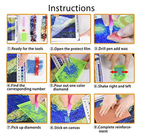 【Materiaal】- De 5D-diamantverfset is zeer helder olieverfschilderij, dat waterdicht is en zelfs textuur heeft. Het patroon zelf heeft een kleverige achtergrond en plastic beschermfolie om het beeld plakkerig te houden, zodat je het beeld gemakkelijk kunt voltooien